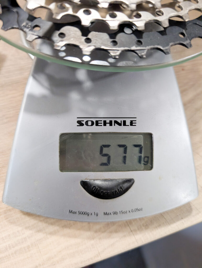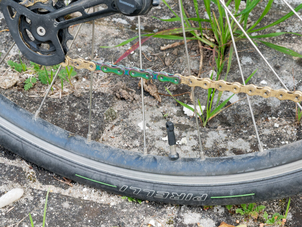 Etwas weniger auffällig: Im Antriebssystem ist nun die aus dem Checkpoint-Aufbau „Dritte Iteration“ übrig gebliebene SRAM PG-1230-Kassette mit ihrer 11-50 Zähne-Spreizung verbaut (davor habe ich eine Sunshine-Kassette mit 11-46 Zähne gefahren). Und die goldene 12-fach KNC-Kette war leider auch schon durch und wurde bei der Gelegenheit durch eine SRAM XX1 ausgetauscht (in ebenfalls gold und vorab mit Heißwachs von Silca behandelt). Da bin ich sehr gespannt, wie sich das im täglichen Pendler-Leben, wozu mein X-Pacer zwischenzeitlich verdammt ist, auswirkt und ob die bessere Kette und gewachst dann auch eine höhere Kilometerleistung erlauben wird. Schöner praktischer Nebeneffekt: Schwarz verschmierte, rechte Hosenbeine gehören der Vergangenheit an.